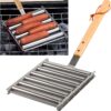 Stainless Steel Hot Dog Roller Rack with Extra Long Wooden Handle
