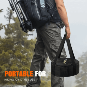 Outer diameter 13″( inner diameter 9″) X height 8.7″. The Firepit comes with waterproof lining – a carrying bag, great for a small space, car camping, or deck picnic. You can take it anywhere you want.