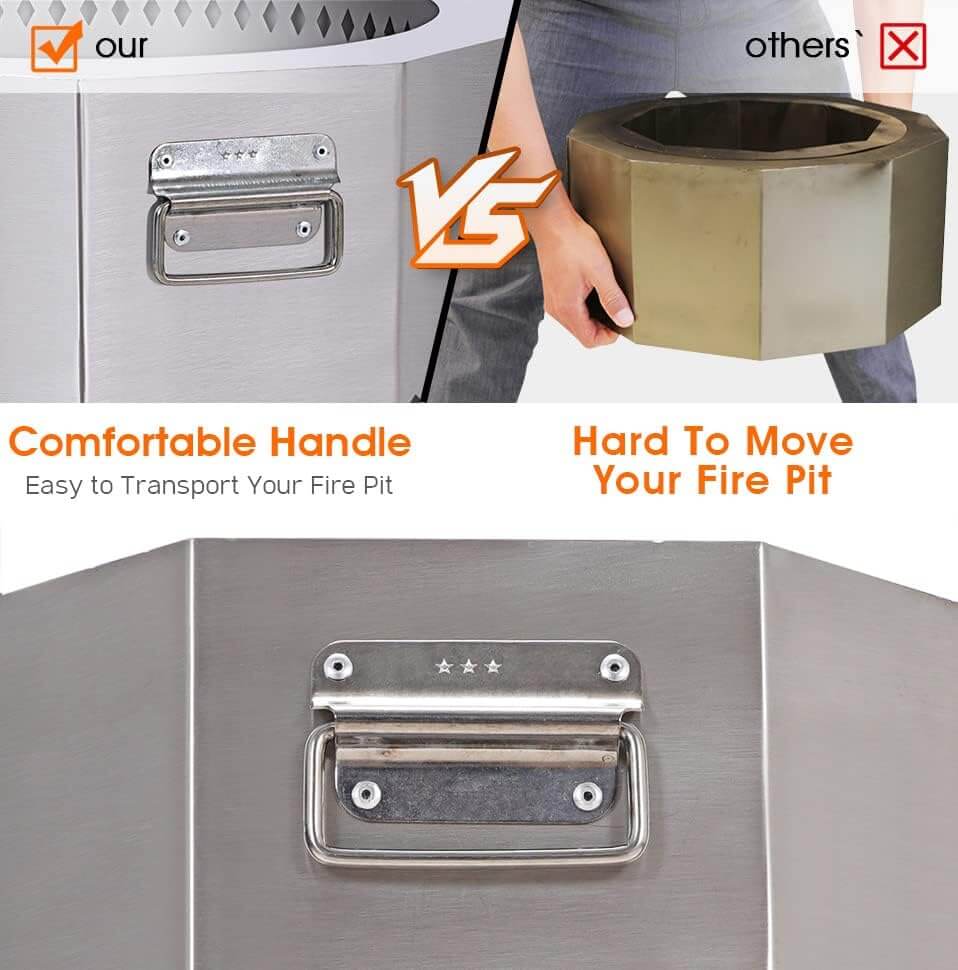 Awesome stainless steel fire pit is antirust and resistant to high temperatures, perfect for wood pellet burning. More affordable for long lasting.